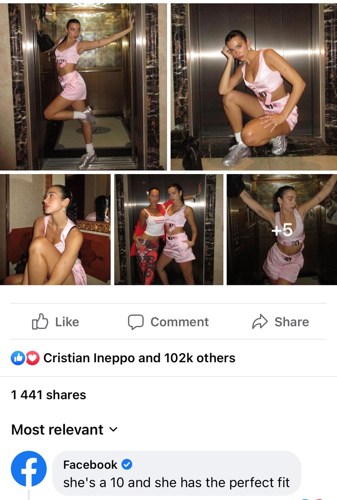 Mark Zuckerberg i ka komentuar së fundmi Dua-s në postimet e saj në “facebook” duke shkruar: “Ajo është një 10 dhe ka kombinimin perfekt”.