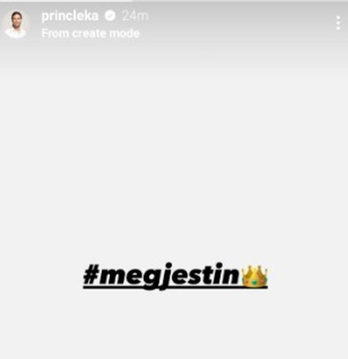 Princ Leka ka postuar në Instagram shkrimin #megjestin, shoqëruar me simbolin e kurorës. Ky reagim vjen pas tensioneve në prime ku u diskutua gjatë për sjellet bullizuese dhe veprimet intimiduese që banorët e tjerë kanë bërë kundrejt tij.