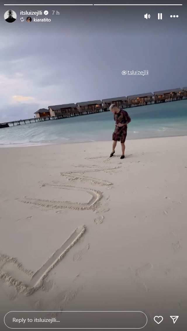 Në një video që Kiara posoti në Instastory, duket Luizi teksa shkruan emrin e Luna Marisë me kapitale në rërë.