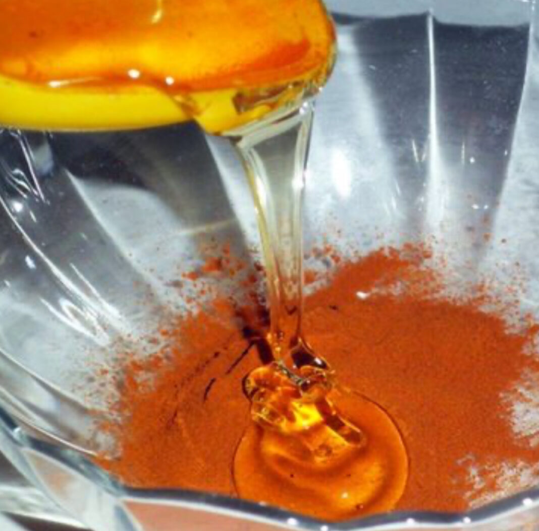 Përzieni një lugë çaji me kanellë dhe një lugë çaji me mjaltë.