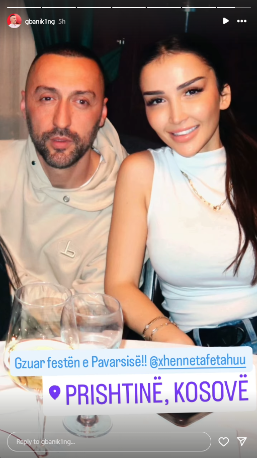 G Bani ka tërhequr vëmendjen e ndjekësve të tij me një postim të ri në rrjetet sociale, ku shfaqet krahas Xhenetës. Me këtë postim, ai ka njoftuar se ndodhet në Kosovë dhe ka shfrytëzuar momentin për të uruar 17-vjetorin e Pavarësisë së Kosovës.