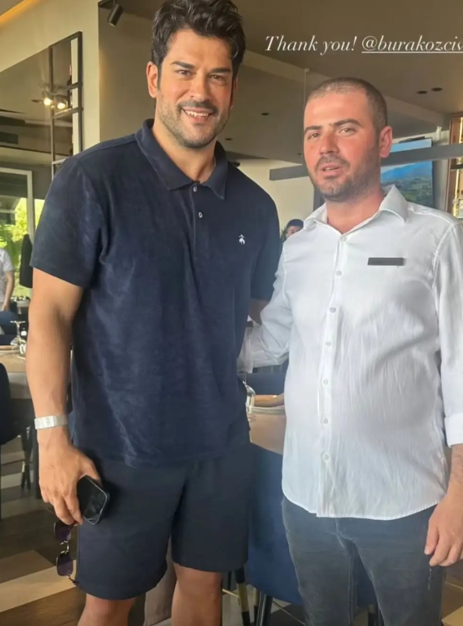 Burak është fotografuar në një nga restorantet e qytetit. Veshur në mënyrë sportive dhe me buzëqeshjen karakteristike, ai ka pozuar me stafin dhe fansat e pranishëm.