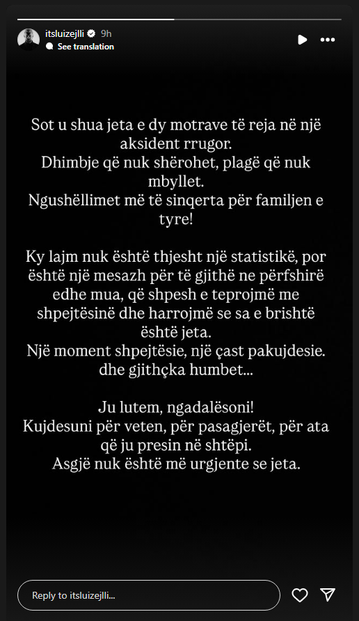 Pas aksidentit tragjik në Sarandë, ku dy motra mbeten të vdekura, edhe këngëtari Luiz Ejlli reagoi me një shkrim të gjatë në Instagram.