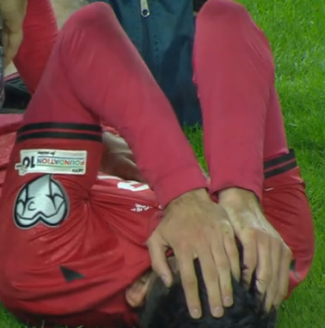 Sulmuesi “dorëzohet” dhe qan me të madhe, teksa ndodhet i shtrirë në fushën e lojës. Një tjetër dëmtim, që fatkeqësisht vazhdon të ndikojë në formën e Brojës, i cili kohët e fundit nuk po kalon aspak një moment të mirë në karrierën e tij futbollistike.