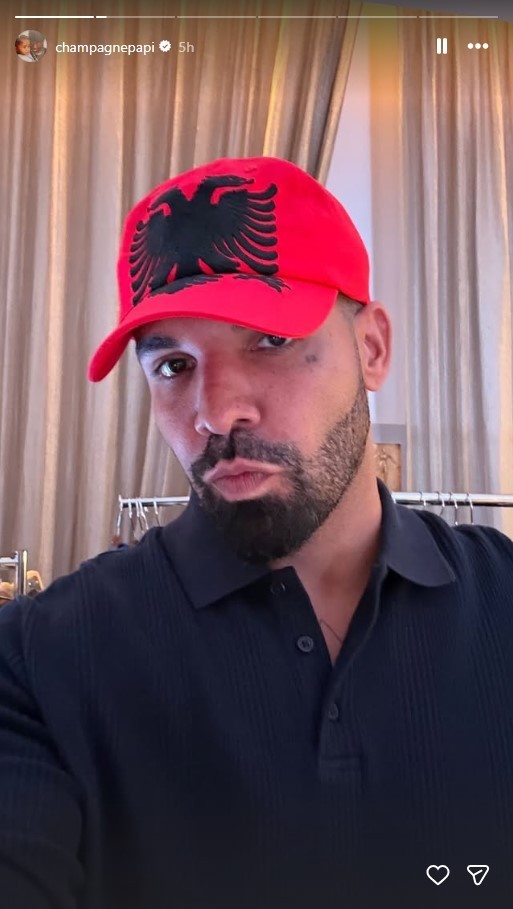 I njohur për stilin e tij unik dhe për lidhjet e forta me kulturën pop, Drake ka publikuar në InstaStory-n e tij një fotografi ku shfaqet me një kapele të veçantë që mban flamurin kombëtar shqiptar, kuqezi.