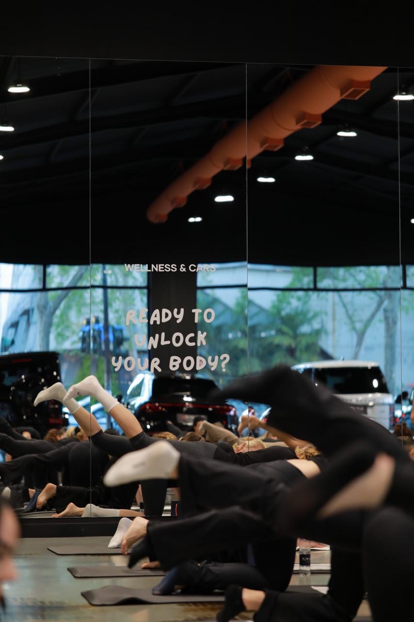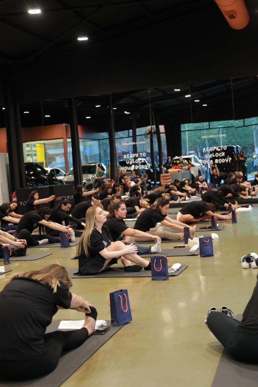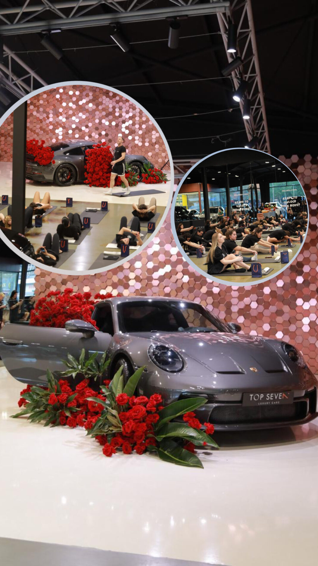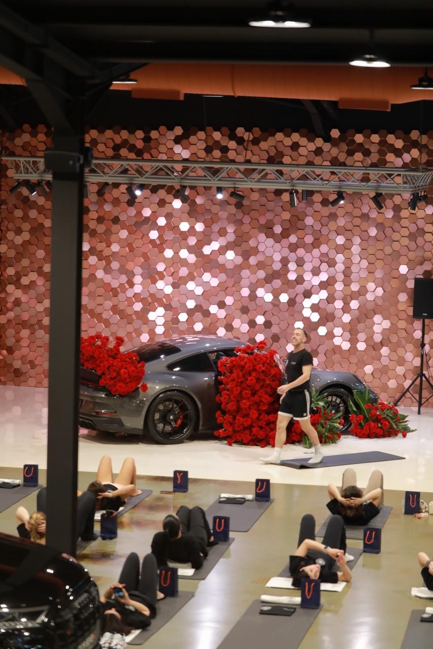 Një klasë stretching, e udhëhequr nga një instruktor ndërkombëtar, solli një frymë krejt ndryshe për të pranishmit. Hapësira, e njohur për prezantimin e automjeteve luksoze, u transformua në një zonë relaksi, balancimi dhe energjie pozitive, duke krijuar një eksperiencë unike për të ftuarit.